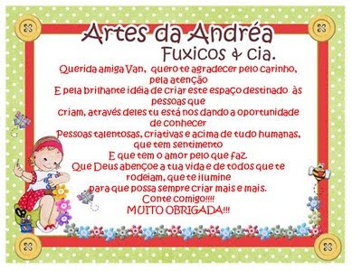 Ganhei da amiga Andrea,amei,obrigado pelas lindas palavras.Grande bjuuuu