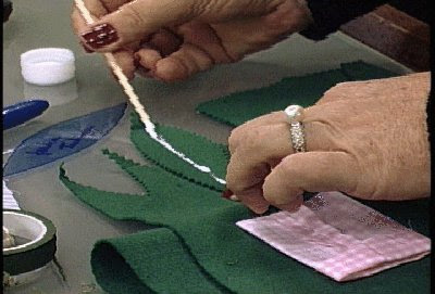 Passe cola pano no centro da folha e cole o arame, de forma que sobre um pedaço