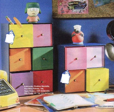 Achei essa idéia de gaveteiro muito bacana,de tão bem acabado parece de madeira,mas acredite são de papelão,e nem por isso menos resistente.