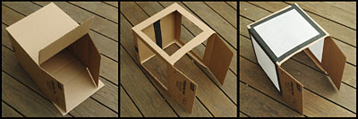 Corte a caixa 3 "janelas" nas laterias e retirando uma das paredes,como mostra na imagem.
