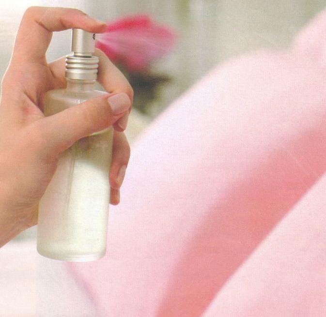 Acione a válvula a uma distância de cerca de 30 cm de roupas de cama,almofadas,cortinas,prateleiras de armários.Assim,você perfuma os tecidos sem molhá-los.
